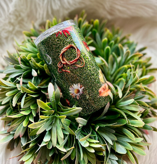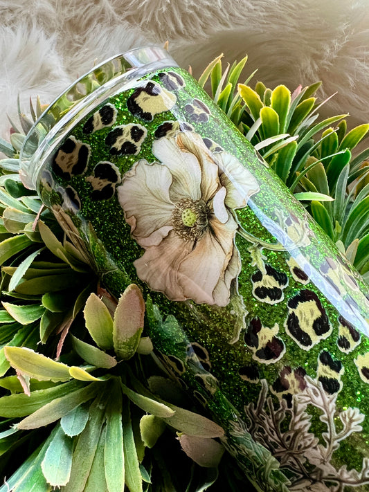 Sold outGreen leopard and floral tumbler
